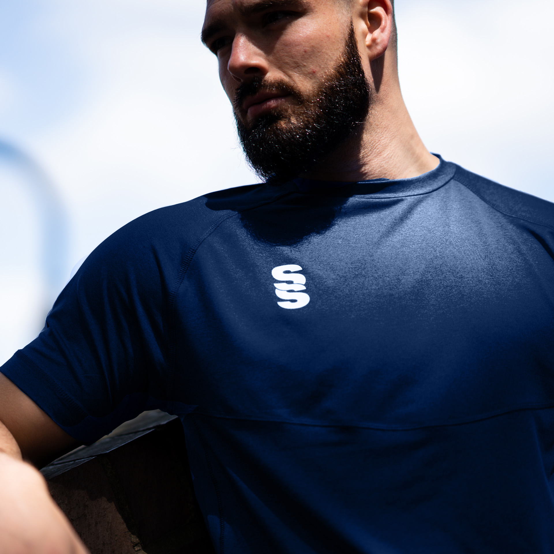 The Dual Gym T-shirt is made of high performance polyester marl fabric, with a contoured underarm side panel in breathable interlock fabric. The crew neck collar is made with modern flatlock stitching. It comes with an option for contrast colour 'dual' graphic print on both shoulders and choice of Surridge SS Logo situated on the right chest. It's super stretchy and is a regular fit, but can be worn one size down for extra fitting around a more athletic build.