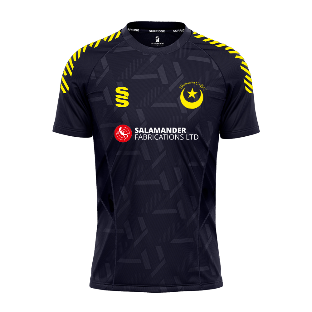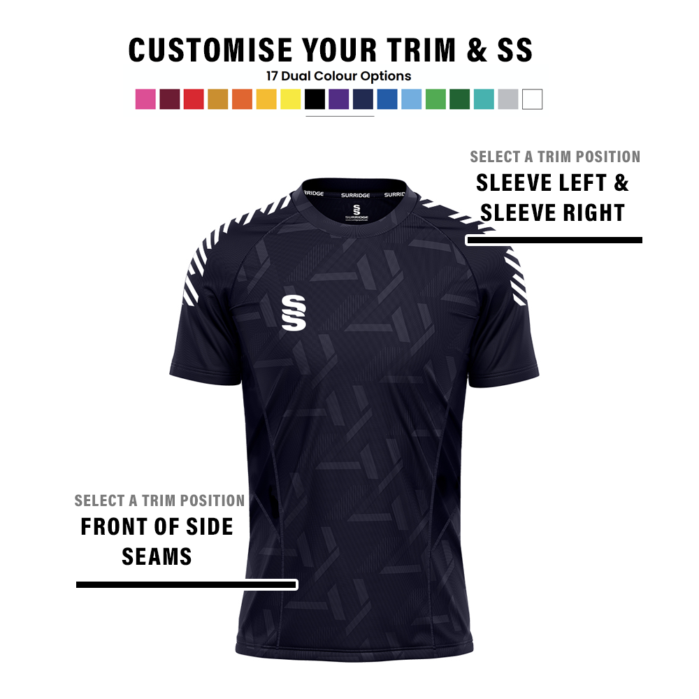 Crew neck fitted polyester interlock material with highly modern print to the from panel