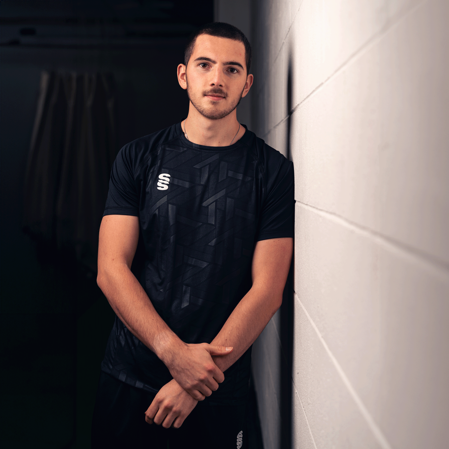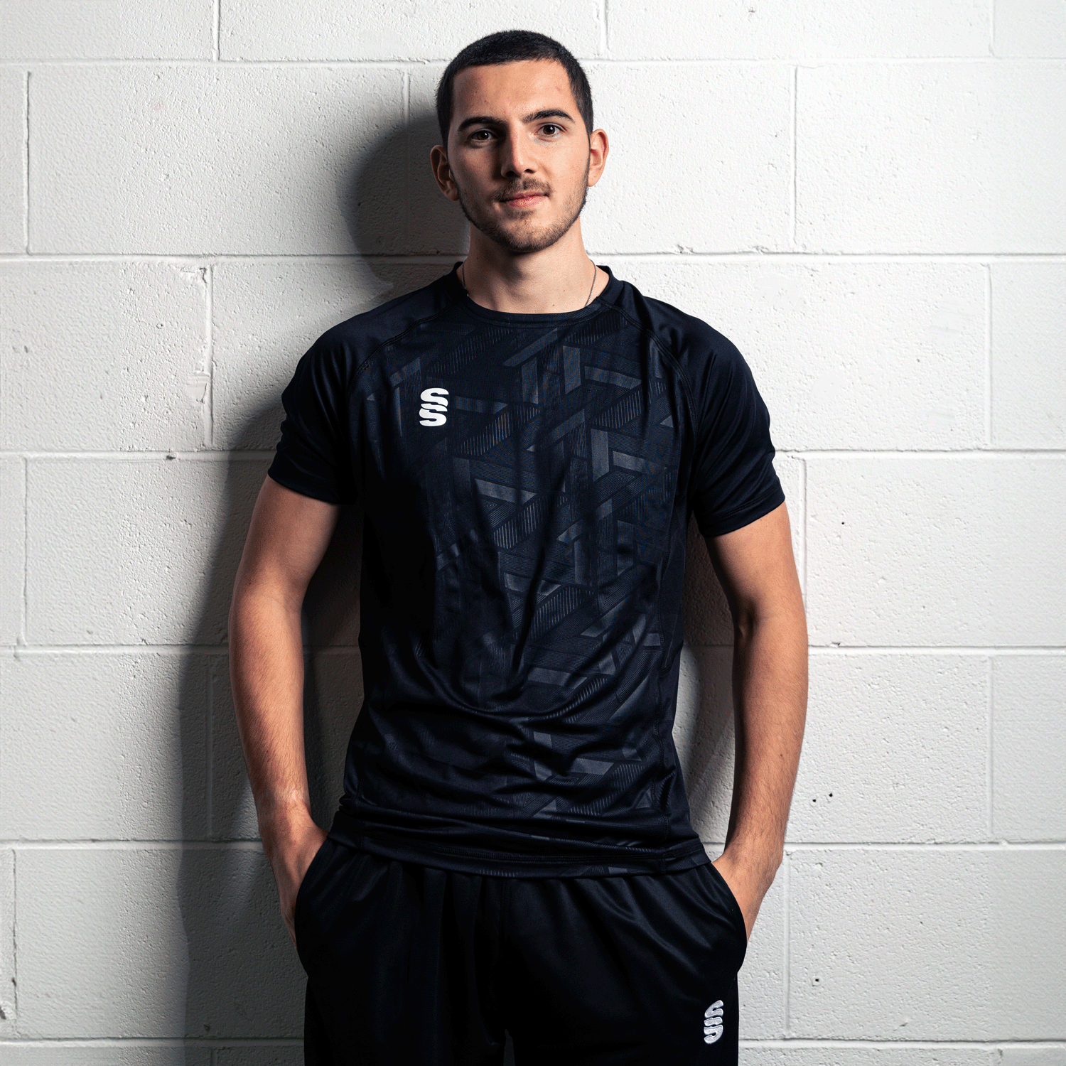 Crew neck fitted polyester interlock material with highly modern print to the from panel